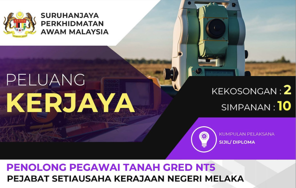 Iklan Jawatan Kosong Penolong Pegawai Tanah Gred NT5 – Pejabat Setiausaha Kerajaan Negeri Melaka